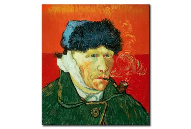 El pintor lleva una chaqueta verde, un gorro azul en la cabeza, la oreja izquierda está vendada, la mirada es atenta pero seria. En 1889, Vincent van Gogh (1853-1890) pintó este “Autorretrato con oreja vendada y pipa” poco después de la dramática noche en Arles que fue un punto de inflexión en su vida: se había cortado una oreja. Diecinueve meses más tarde se suicidó.
