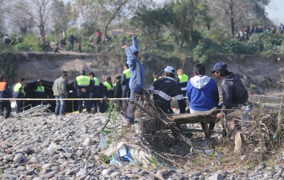 “Nosotros lo conocíamos a ese chango, vivía allá arriba”, dijo un niño y señaló con su dedo índice la barriada que se extendía en lo alto, al costado del río Salí. Allí, una hilera interminable de personas parecía hipnotizada por las tareas que realizaban los peritos, abajo, al borde del agua. Los policías hacían malabares con una lona negra para que no pudieran ver el cadáver, pero no lograron evitar las miradas de los chicos que habían llegado a caballo y cuchicheaban entretenidos a escasos metros del cuerpo.