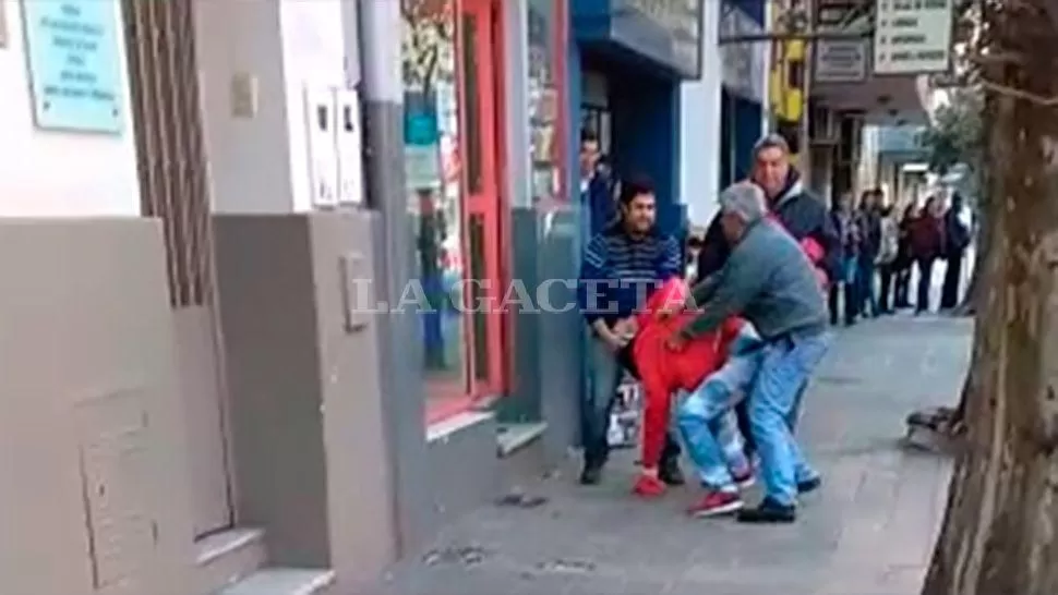 ATRAPADO. El ladrón fue reducido por el dueño del local y otro hombre.