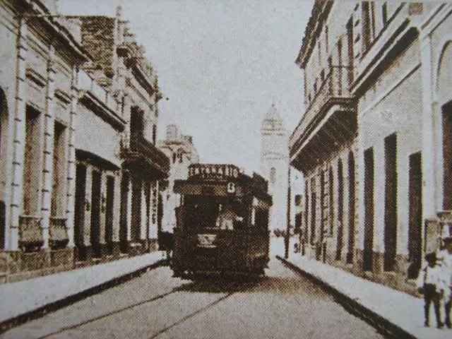 TUCUMÁN EN 1913. Un tranvía recorre la calle Laprida. La provincia crecía vertiginosamente volviéndose atractiva para los delincuentes aun a distancia.