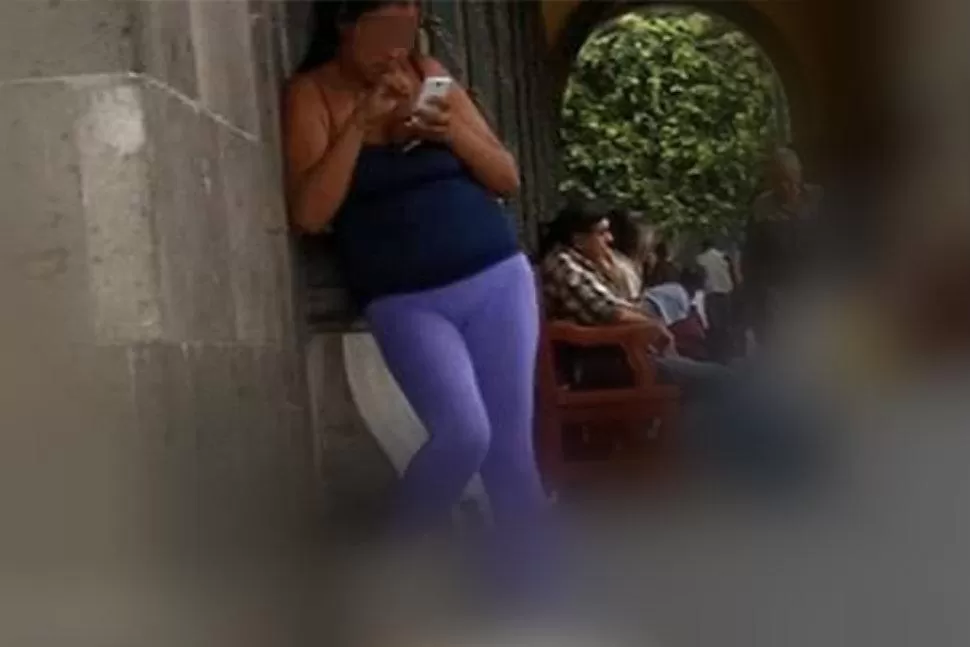 Según la autora de la imagen, la mujer es señalada por acudir regularmente a la Plaza del Ayuntamiento en Guadalajara y aprovechar el WiFi gratuito del Palacio de Gobierno.