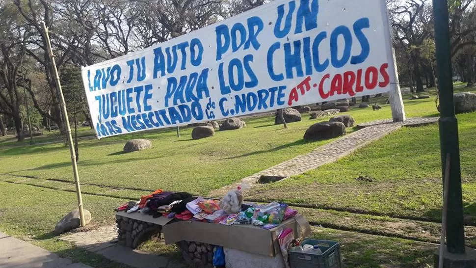 Gastón Gatti, un joven estudiante de la carrera de Arquitectura, se sumó a las actividades solidarias por el Día del Niño: junto a un grupo de amigos lavan autos en el Parque 9 de Julio para recaudar juguetes para los chicos más necesitados del