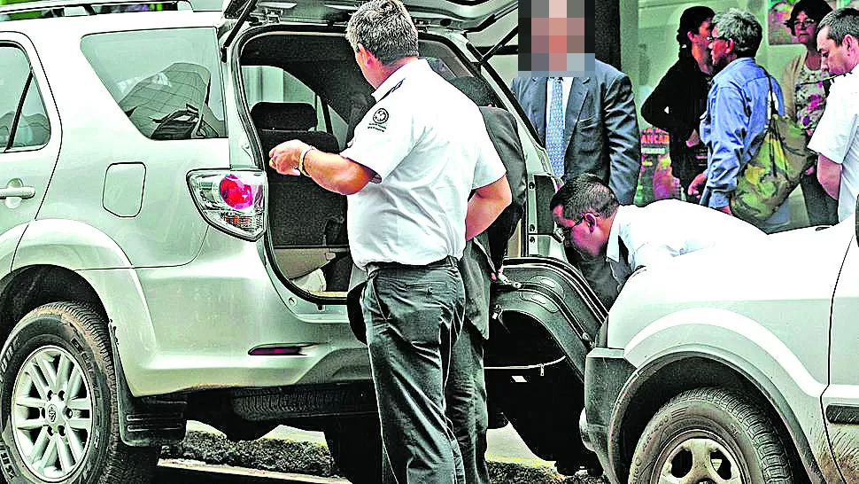 HACIA LA TESORERÍA. Una valija sale del banco Macro, cargada de dinero. LA GACETA / FOTO DE INÉS QUINTEROS ORIO HACIA LA TESORERÍA. Una valija sale del banco Macro, cargada de dinero. LA GACETA / FOTO DE INÉS QUINTEROS ORIO