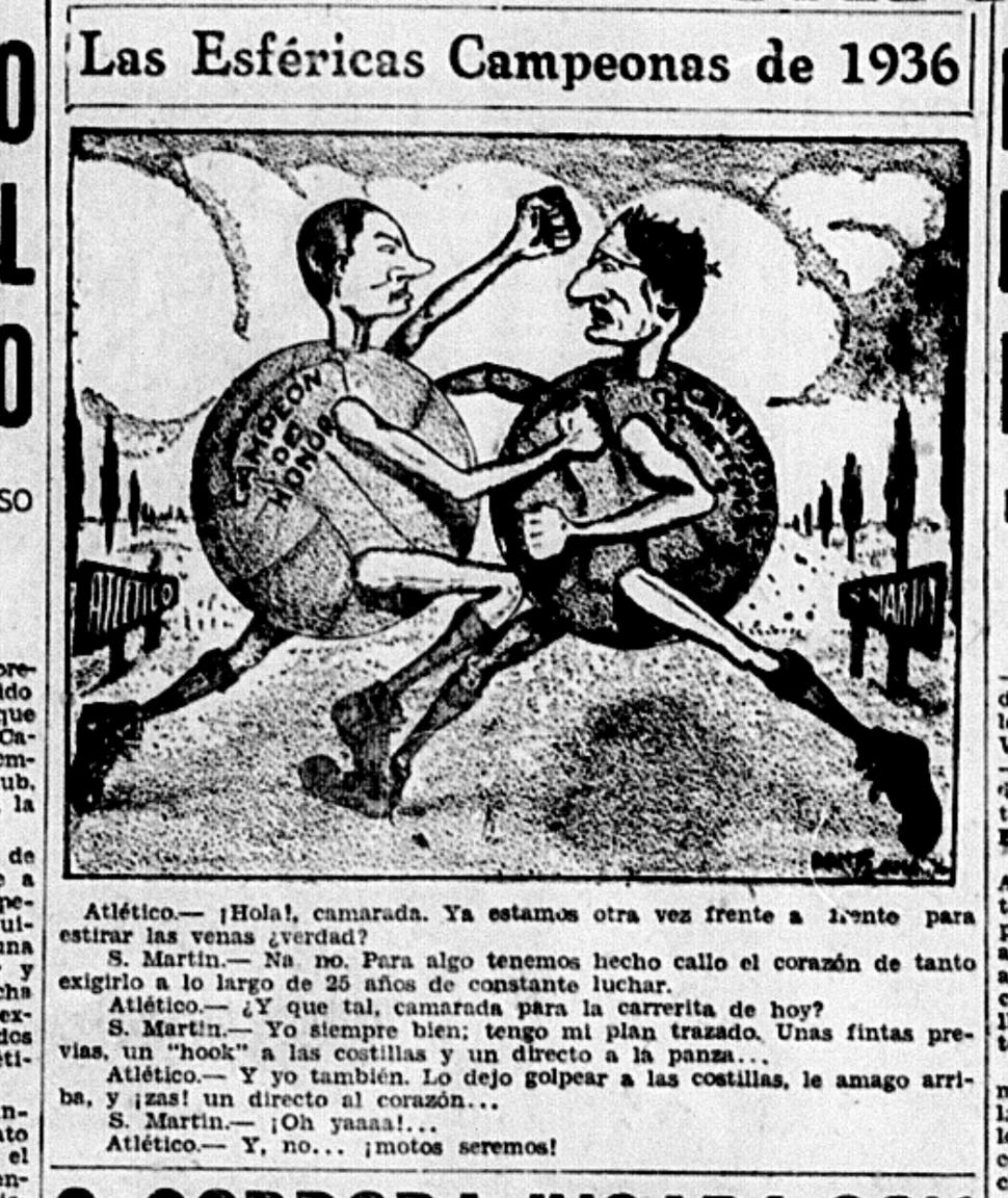 HUMOR GRAFICO. Un dibujo anunciaba el trascendental encuentro entre Atlético y San Martín por el Anual de 1936. HUMOR GRAFICO. Un dibujo anunciaba el trascendental encuentro entre Atlético y San Martín por el Anual de 1936.