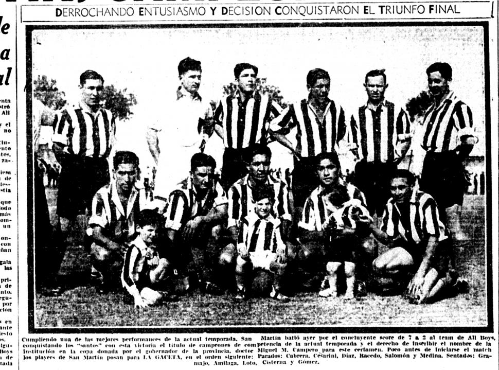 “LA GACETA identificada con el movimiento deportivo del norte del país, en cuyas páginas vibra una inquietud generosa plena de sinceridad, saluda el triunfo de San Martín como lo hubiera hecho con All Boys si hubiera resultado vencedor, como el estímulo más precioso para todos los que han contribuido a hacerlo viable”, se agregaba.
