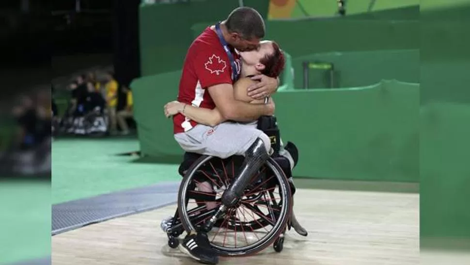 Jamey Jewells y Adam Lancia, integrantes del equipo paralímpico de Básquet de Canadá, enamoraron a todos cuando él se acercó a ella desde la tribuna y la besó luego de la victoria sobre China.