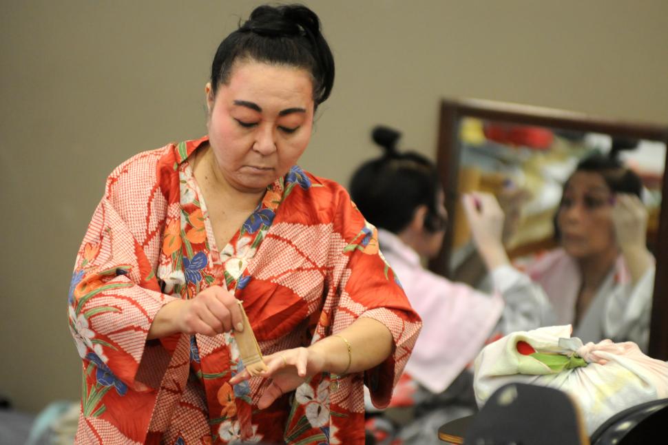 Con todo ello, no fue raro ver por los pasillos de Filosofía y Letras a mujeres de origen japonés maquillándose -no tanto como una geisha- antes de subir al escenario para interpretar danzas tradicionales clásicas, muy comunes en la corte del reino de Ryukyu desde el siglo XIV al XIX. Allí estaban, con pinceles en mano, kimonos originales de Japón y una decena de prendas que tenían que ponerse encima Analía Tengan, Elena Asato y Nieko Itokazu (llegó a Argentina a los 8 años). Les llevó casi dos horas alistarse. “Esto se baila en la apertura de todas las celebraciones”, remarca Analía, que pertenece a una agrupación japonesa de Buenos Aires, y que recorre el país para mostrar su baile.