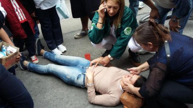 El accidente se produjo luego de que la mujer tuviera que realizar una maniobra brusca para eludir la puerta de un taxi que estaba estacionado en la parada de esa esquina, tras lo cual fue chocada por otro auto de alquiler que pasaba por el lugar.