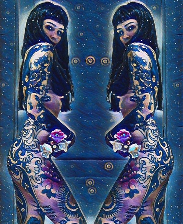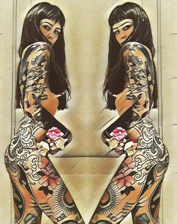 Además, la artista plástica aprovechó y mostró su cuerpo totalmente desnudo, donde por los filtros utilizados para las fotos y sus tatuajes, es casi imposible distinguir su piel, aunque si deja en claro que tiene una figura escultural.