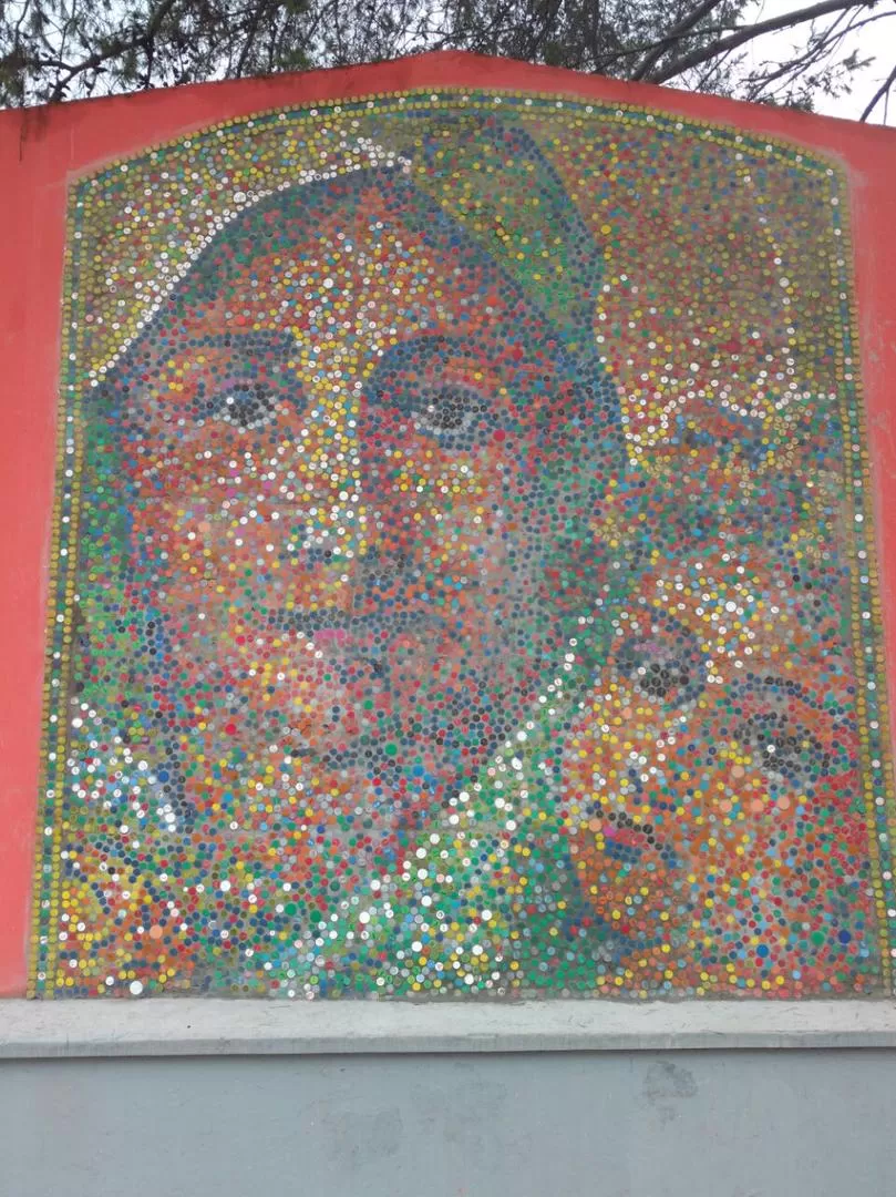 Los mensajes de lectores, en este espacio, casi siempre se refieren a alguna situación de pedidos, reclamos y necesidades varias. En este caso, hemos creído que vale la pena publicar esta hermosa imagen tomada con su celular, por un vecino de Tafí Viejo. Se trata de la imagen de la Virgen con el Niño, obra realizada por el artista Atilio Roberto, con tapitas de gaseosa, sobre la pared de la escuela Fray Cayetano Rodríguez.