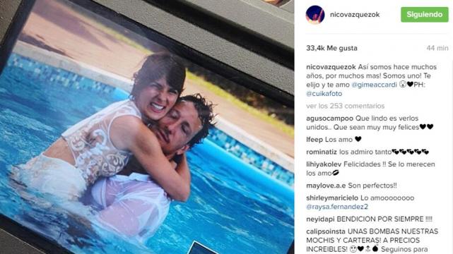 MOJADOS Y FELICES. Gime y Nico después de dar el "Sí". FOTO TOMADA DE INSTAGRAM.