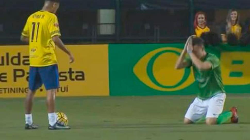 Neymar es un crack y todos disfrutan de su habilidad. Todos menos sus rivales, claro. A esto lo dejó bien en claro un jugador del equipo contrario a "Ney", durante un partido a Beneficio disputado en Brasil.