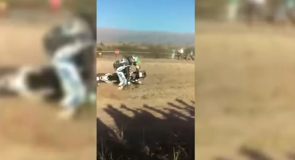 Como puede verse en el video, la rueda de su vehículo -una FR450 Rally Husqvarna- se cruzó en una subida y tuvo un mal apoyo, causando la fuerte caída del competidor.