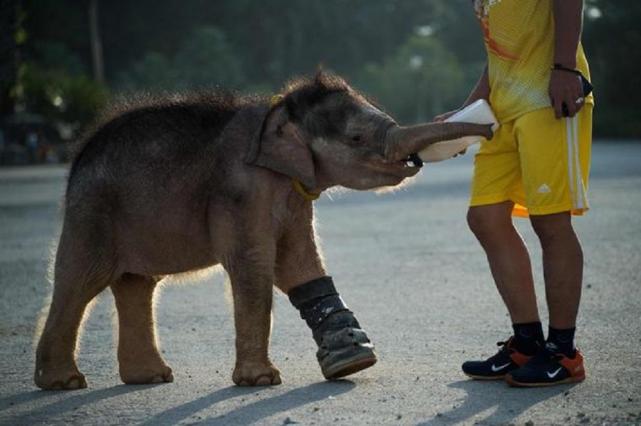 Un cachorro de elefante aprendió a caminar nuevamente en Tailandia, luego de que un grupo de veterinarios le fabricara una prótesis y lo semetiera a un tratamiento especial para que pueda moverse con normalidad.