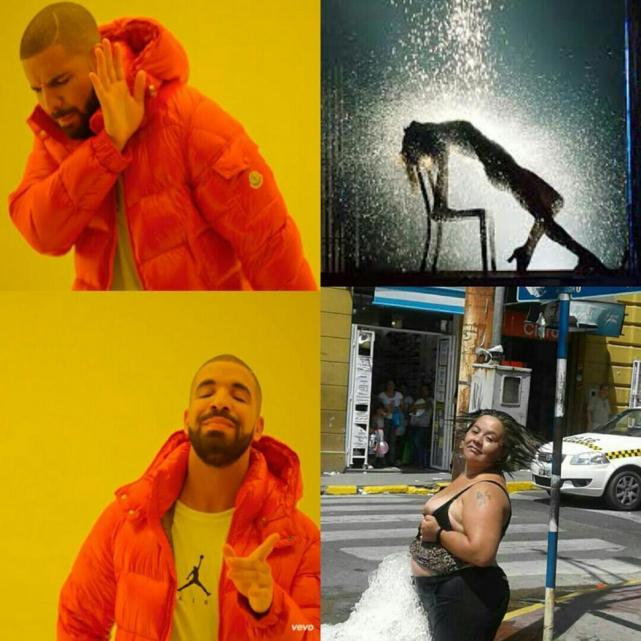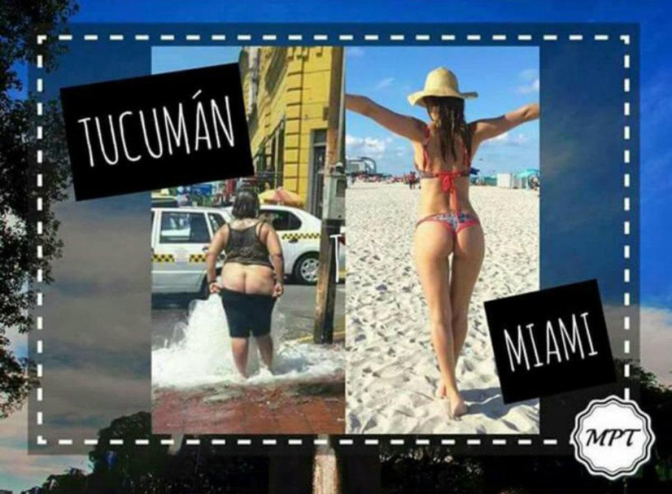 Los ingeniosos de las redes no tardaron en aparecer luego de que una mujer posara para las cámaras en una salida de agua, en la esquina de avenida Avellaneda y 24 de Septiembre.