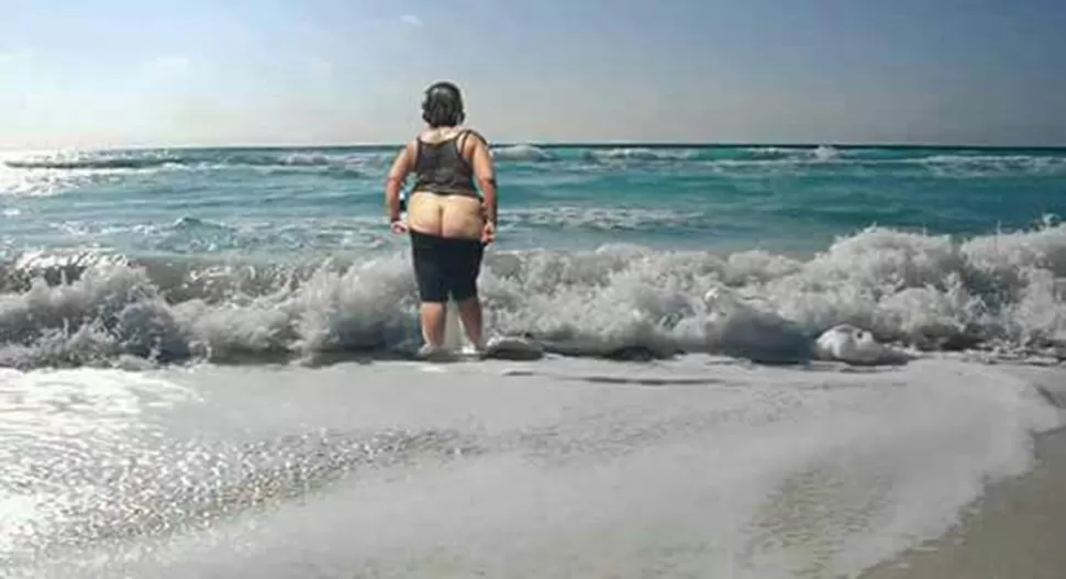 La señora hizo un espectáculo en El Bajo, en el que se bajó los pantalones, mostró sus pechos y jugaba con dinero mientras se mojaba con en el "géiser" artificial,