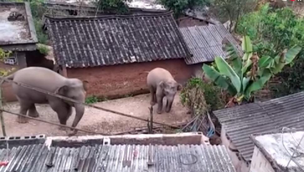 Los habitantes de un pequeño pueblo en la provincia china de Yunnam vivieron momentos de terror luego de que una manada de elefantes salvajes invadiera el poblado en busca de alimento.