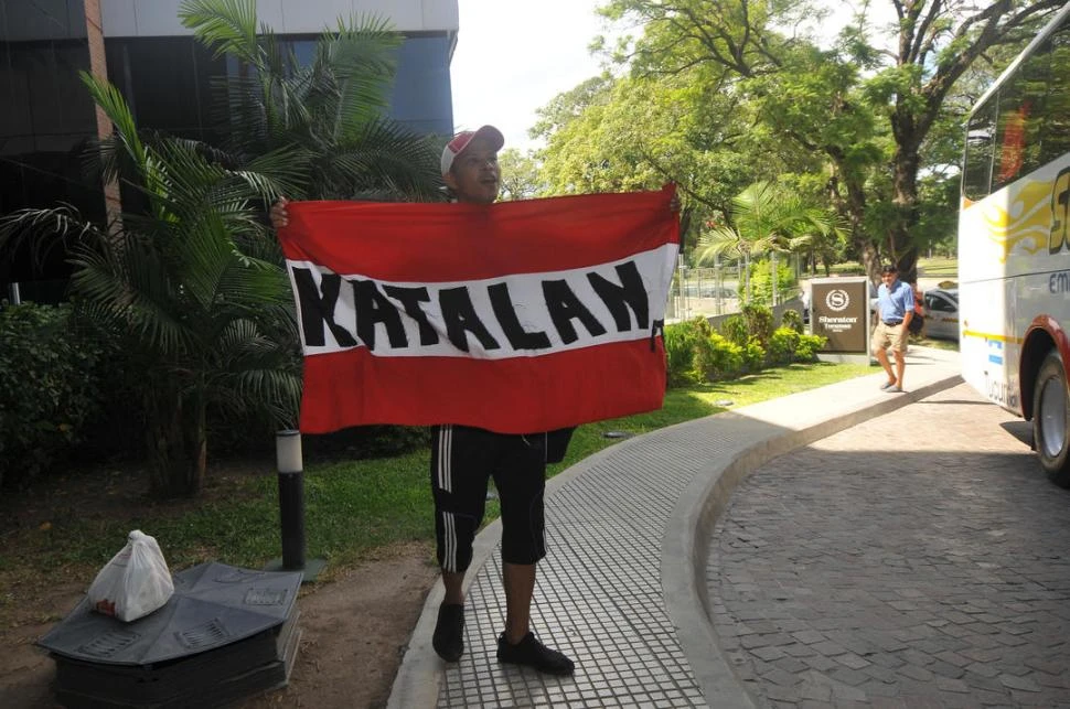 “Salí el lunes de la semana pasada. Me he venido transportando de país en país, de ciudad en ciudad. Durante el día trabajaba de cualquier cosa, y si tenía que pedir, pedía, para juntar dinero y seguir camino durante la noche. De esa manera me ahorraba también el hospedaje. Hasta que llegué aquí el martes”, contó Luis, quien le manifestó su apoyo a los jugadores del “Tiburón” agitando su bandera, que rezaba “Katalán”. “Representa a un amigo que me mataron allá en Barranquilla el 12 de diciembre. Por eso traje esta bandera conmigo, para rendirle homenaje y que él desde donde esté me acompañe”, reveló el fanático. Obligado a vivir al día, decidió pasar la noche en algún rincón de la Terminal de Ómnibus, para ahorrarse el hospedaje.