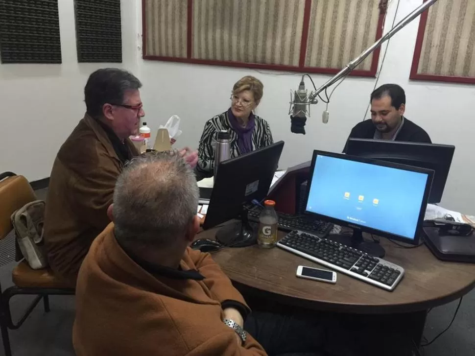 “RADIO DINÁMICA”. Noemí Colombano con entrevistados en una de sus clásicas transmisiones en LV7.