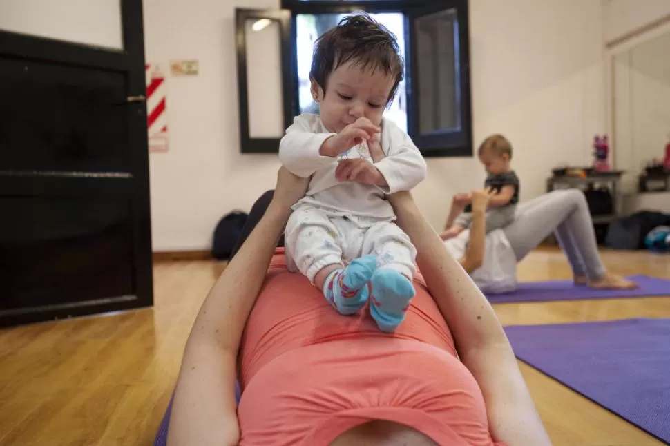 Bruno no se queda quieto y es lógico con sus 11 meses de vida. Pero siempre está en la órbita de Nayla Heluani, rozándola con sus manitos, abrazándola o subiéndose encima de sus caderas, y ella lo besa constantemente mientras transcurre la clase de Kangatraining. Allí pueden estar juntos, porque es un tipo de entrenamiento al que las mamás pueden asistir con sus hijos pequeños. Y no se trata sólo de mujeres que no quieren o no tienen con quién dejar a sus pequeños: es gimnasia con fines terapéuticos, de bajo impacto, que se enfoca en la recuperación del piso pélvico y el abdomen profundo. Es una tendencia que crece en todas partes del mundo y en Tucumán comenzó en febrero.