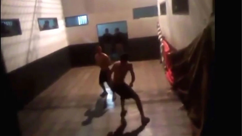 En las imágenes se puede ver a los presos peleando mientras los uniformados los observan.