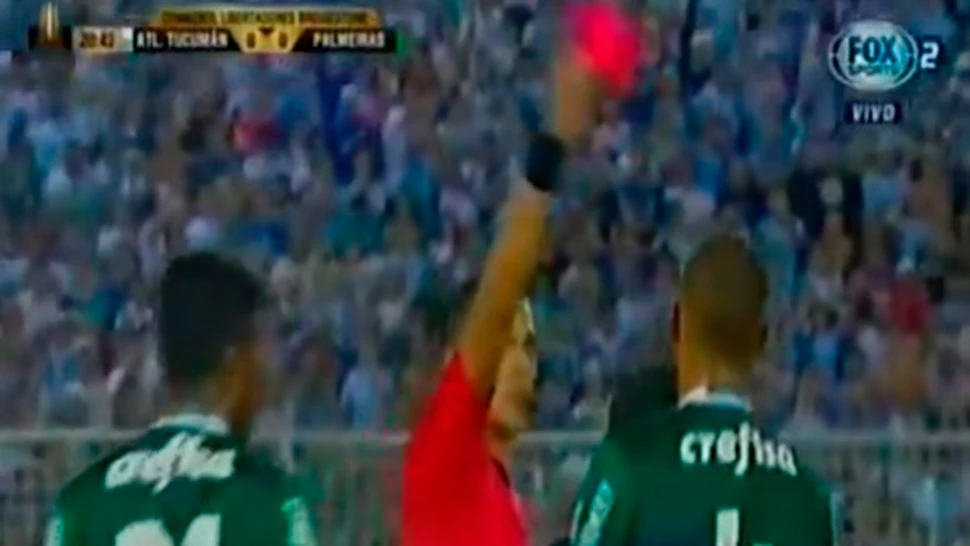 Con la consecuente tarjeta roja, Palmeiras se quedó con 10 hombres y, para colmo de males, el mismo Zampedri anotó el 1-0 para el "Decano" luego de reingresar al campo tras ser asistido.