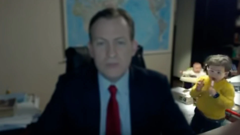 Lo que era una entrevista seria se transformó en la nota más divertida de la historia de la cadena BBC. El profesor Robert Kelly comentaba como especialista en Ciencias Políticas la situación de Corea del Sur desde el despacho de su casa cuando, de repente, su hija abrió la puerta y entró en la habitación buscando la atención de su padre.