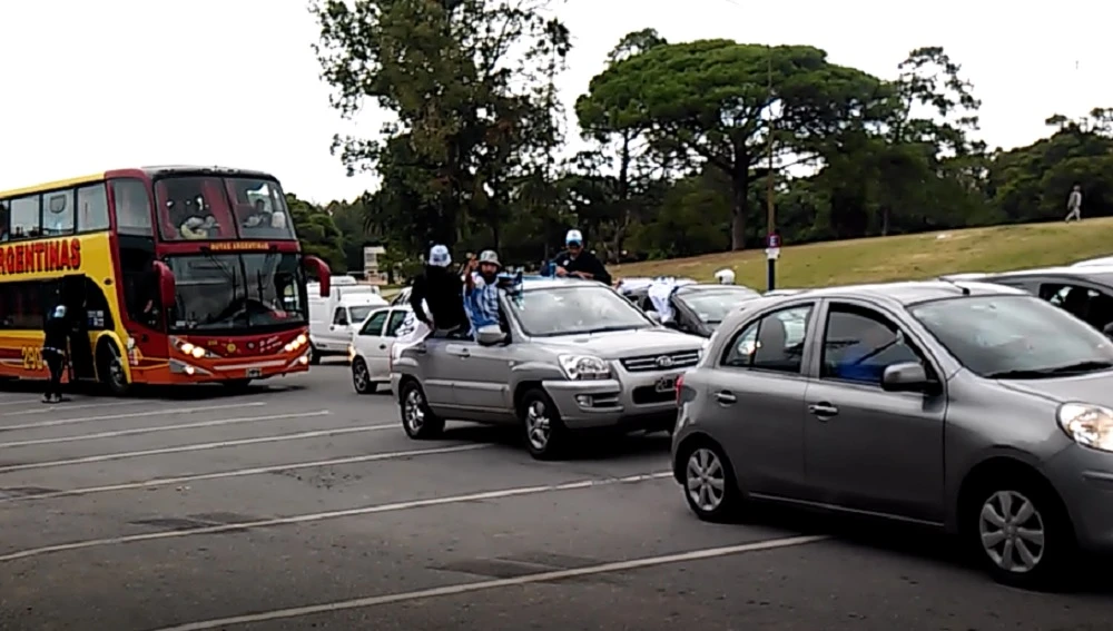 Juan Pablo Bergansola, de la "Agrupación Monumental", contó que sacaron dos colectivos con 120 personas. "Por un problema que tuvo uno de los pasajeros tuvimos que hacer 27 horas de viaje para llegar a Montevideo", detalló.