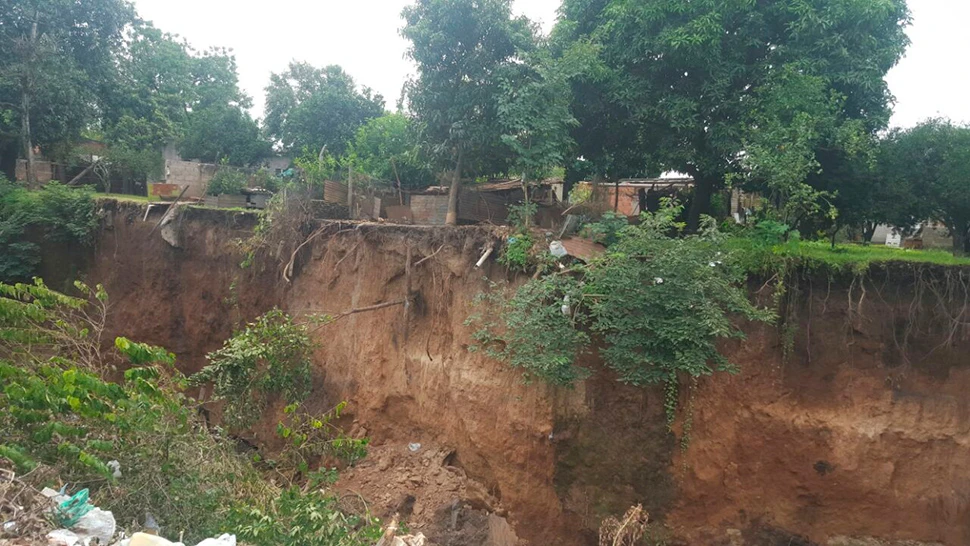 La lluvia no es una bendición para los vecinos de calle Juan B. Teran, en Villa Carmela. Viven con miedo todos los días, sensación que se manifiesta con más fuerza con cada precipitación. El patio de cada vivienda precaria desaparece de a poco, metro a metro, lo que genera el riesgo de un desmoronamiento total, según alertaron.