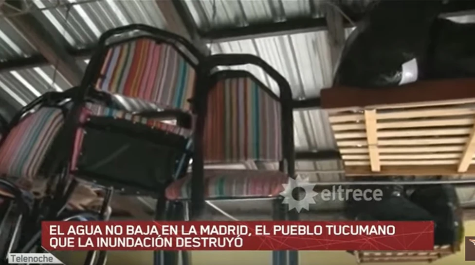 La nota periodística, que se transmitió por "Telenoche", muestra cómo quedó una de las casas después de haberla limpiado y el ingenio de uno de los tucumanos afectados que ató las sillas, el elástico de la cama y -arriba de eso- el televisor, para protegerlos y salvarlos del temporal.