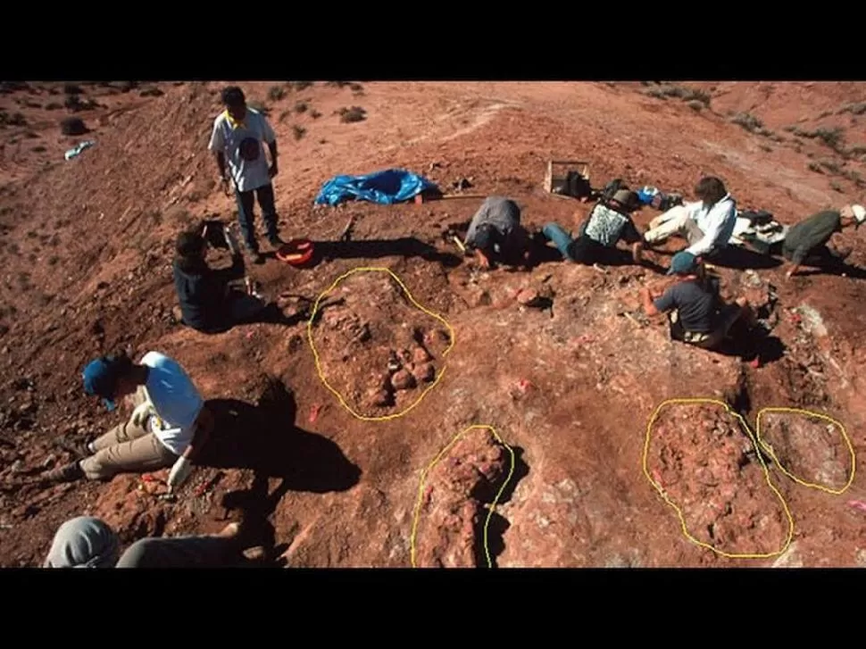 Huevos de dinosaurio con embriones en su interior, que tienen una antigüedad de 70 millones de años, fueron hallados en un sitio denominado Auca Mahuevo, en cercanías del paraje Aguada San Roque, 160 kilómetros al noroeste de Neuquén, informó la agencia Télam. Los huevos presentan características similares a los encontrados en 1997 en el cerro Auca Mahuida, que es una zona natural protegida de la provincia.