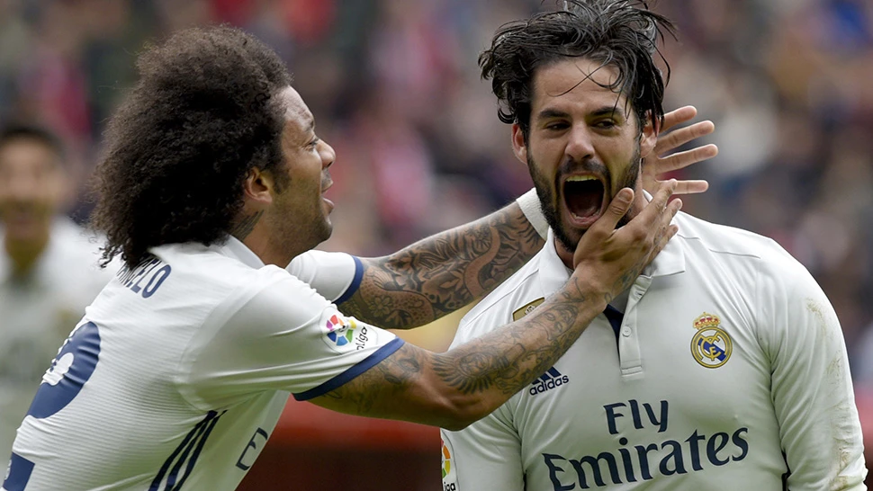 El equipo de Zinedine Zidane remontó dos veces el marcador con goles de Isco y Álvaro Morata hasta que en el minuto final del tiempo reglamentario consiguió el tanto del triunfo, nuevamente mediante Isco. Gijón, situado en zona de descenso, cumplió una digna actuación y puso en apuros al líder, al adelantarse en el tanteador con goles del croata Duje Cop y Mikel Vesga.