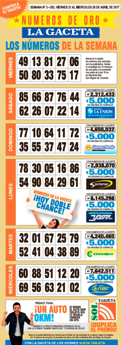 Como cada miércoles, se publicó la grilla completa de los Números de Oro de LA GACETA para que los lectores puedan revisar sus tarjetas. Aquellos que completen los 15 números de una de las grillas de su cartón deberán presentarse en calle Mendoza 654 hasta las 18, que cierra la semana número 3 de Números de Oro. Hay un pozo de $ 180.000.