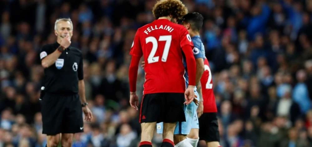 Sucedió a falta de 10 minutos para el final del duelo, el belga Marouane Fellaini reaccionó ante un cuestionamiento que le hizo Sergio Agüero y le tiró un cabezazo al mejor estilo Zidane en el Mundial de Alemania.