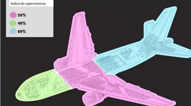 Pasajeros en el fondo del avión, detrás de las alas: 69% de probabilidades de sobrevivir.