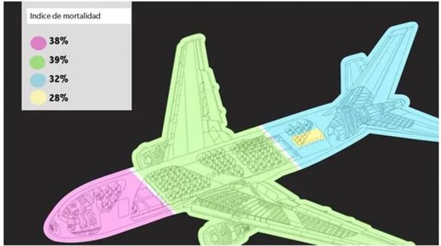La parte central: (sin diferenciar si están ubicados delante o detrás de las alas): un 39% de chances de muerte.