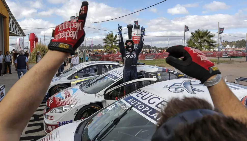 FESTEJO. El ganador agradeció al cielo en el parque cerrado. corsa