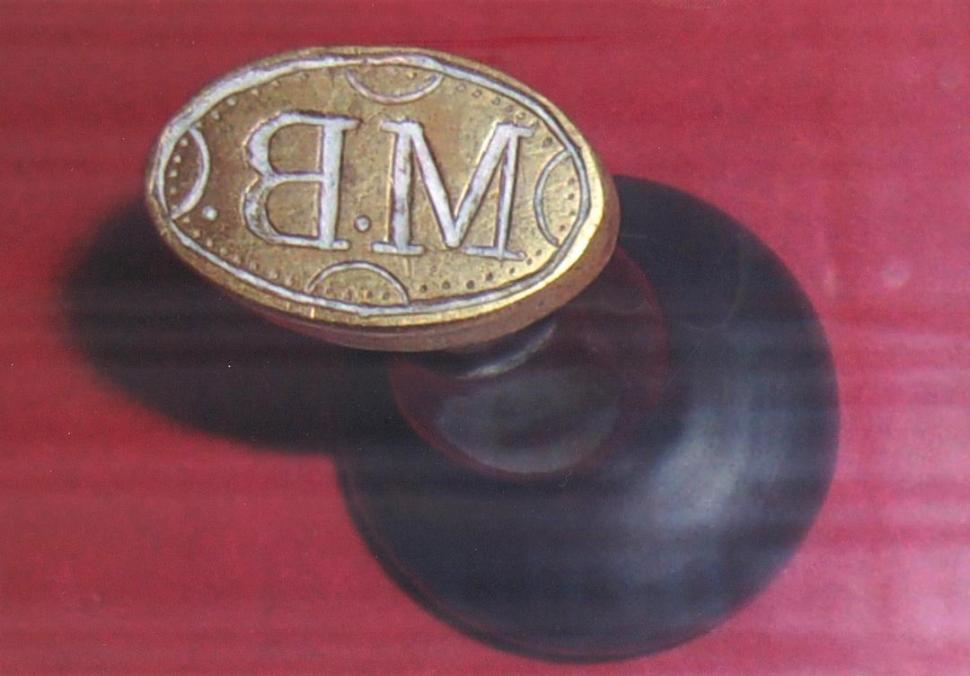MANUEL BELGRANO. Sello de bronce con sus iniciales, que utilizaba el creador de la bandera.