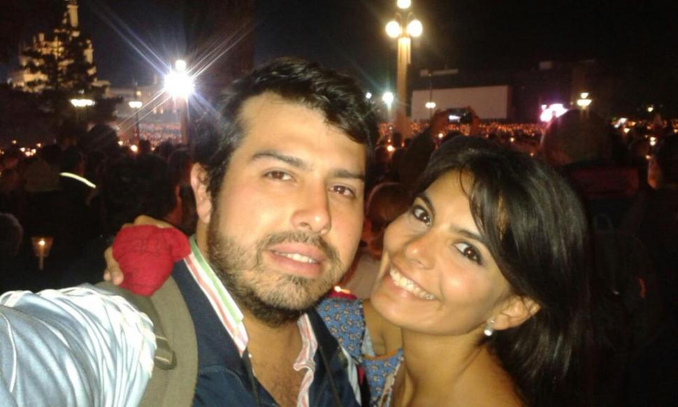 EMOCIONADOS. Matías Macovich y Cecilia Montes, después de escuchar el mensaje del papa Francisco. GENTILEZA DE MATÍAS MACOVICH