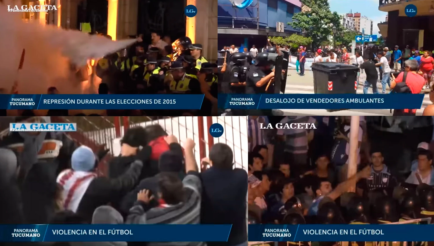 Las escenas de violencia son cada vez más habituales en las calles y en algunas instituciones tucumanas. En el programa "Panorama Tucumano" los productores de LA GACETA TV seleccionaron algunos de los salvajes enfrentamientos ocurridos en los últimos meses y años en la provincia, como la represión durante las protestas contra los saqueos y en las elecciones de 2015; en los estadios de Atlético y de San Martín; los numerosos casos de violencia de género ocurridos en Tucumán; y los violentos incidentes ocurridos en la sede de la UNT durante la toma del Rectorado, en 2014.