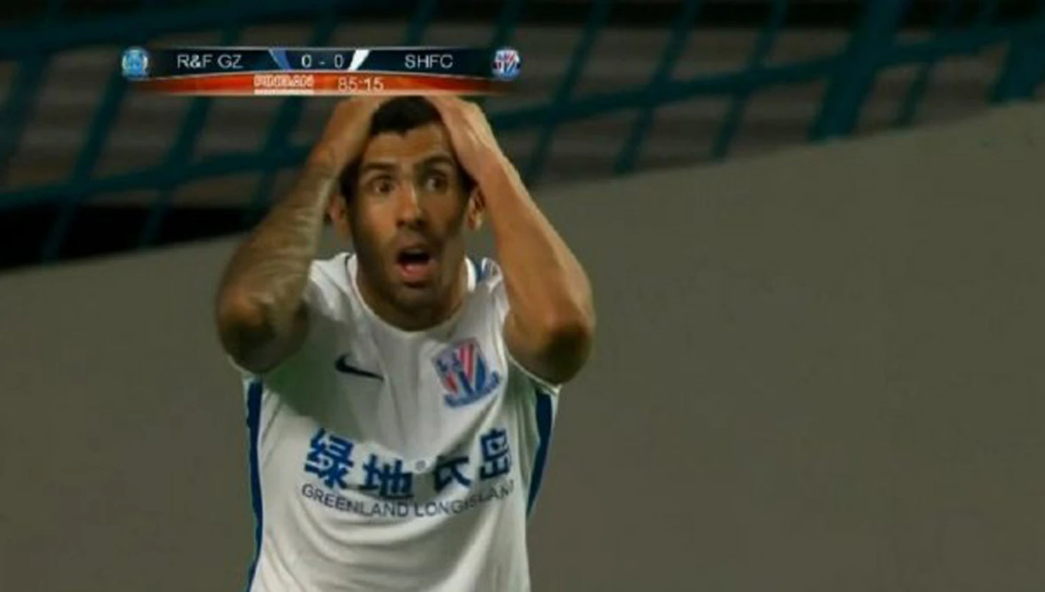 Carlos Tevez se presentó con su equipo Shangai Shenhua y sufrió una insólita decisión del árbitro Ma Li en el juego ante Guangzhou en el Yuexiushan Stadium de Canton. ¿Qué pasó? El juez le anuló un golazo por una supuesta mano previa, infracción que no exisitió.