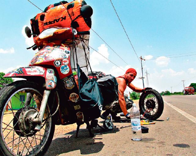 Yago partió de Córdoba el 7 de enero de 2011, hace seis años y medio, con el propósito de recorrer Latinoamérica en su “Vizcacha”, una Honda Biz de 105 cc modelo 2008. Hacía cinco años que había terminado el secundario y tres que viajaba en moto, cuando decidió que ese era el estilo de vida al que aspiraba. “Decidí trascender fronteras, ir un poco más allá”, dice él, con simpleza. Ese “un poco más allá” se llama México y Cuba, los dos países más lejanos a los que ha llegado. En el medio, la locura por el camino lo llevó con el mismo entusiasmo a las fiestas inagotables de Brasil o a la cruda realidad de las FARC en Colombia, con cuyos miembros tuvo oportunidad de charlar y compartir algún tiempo.