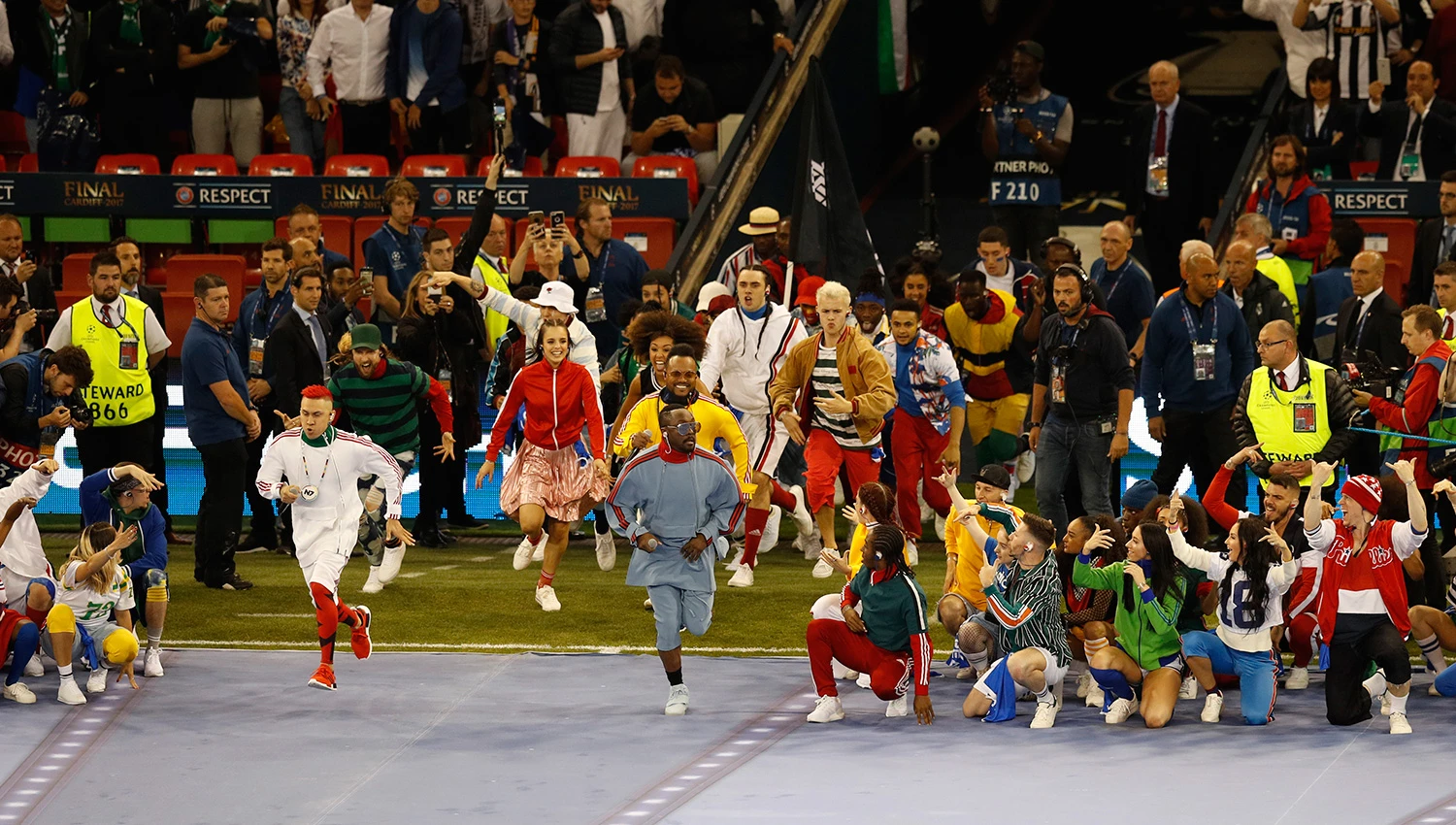 GALES.- Black Eyes Peas fue el encargado de ponerle fiesta a la previa de la final de la Champions League, minutos antes de que los jugadores de Real Madrid y Juventus salgan al campo de juego. Sin Fergie, el grupo estadounidense mostró lo mejor de su repertorio en el Millennium Stadium de Cardiff.La música de la banda sonó durante cerca de seis minutos sobre un escenario, que pesa aproximadamente 4.500 kilos y que será instalado sobre una alfombra gigante protectora de 7.000 metros cuadrados.
