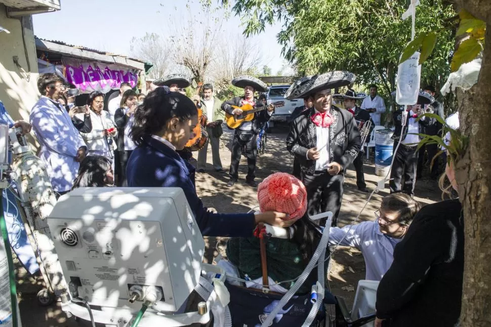 Ahora Liliana está sentada al aire libre, con el suero colgando de la rama de una morera. El espectáculo es una sorpresa: un grupo de mariachis irrumpe con sus guitarras y enormes sombreros. “Ese lunar que tienes, cielito lindo, junto a tu boca, no se lo des a nadie, cielito lindo, que a mí me toca ...”