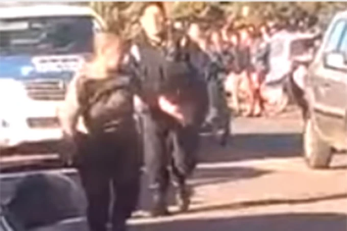 "Minutos después llega una camioneta de la Policía, desciende de allí un uniformado que porta en su mano un látigo tipo rebenque, la amenaza, le tira un manotazo, y ante la huida que Florencia emprende, este policía la persigue pegándole con el látigo", añade.
