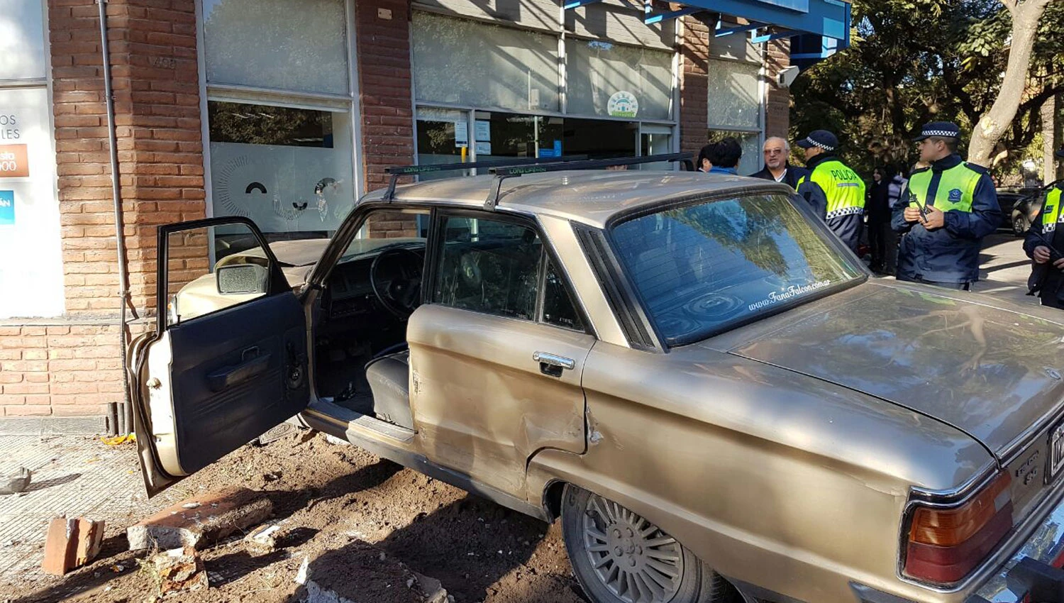 Un auto se subió a la vereda y se estrelló contra el banco de 25 de Mayo y Sarmiento