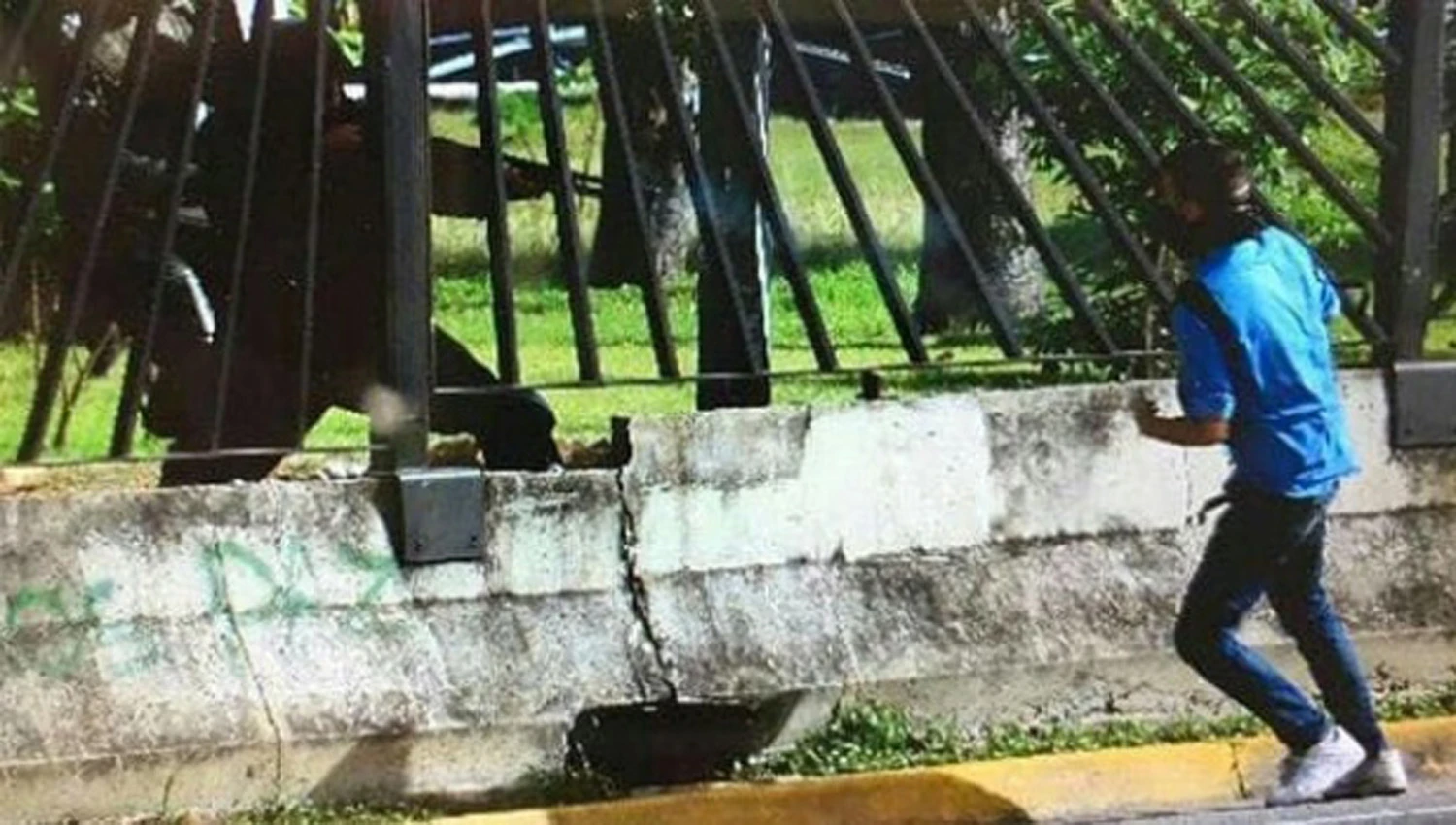 La víctima es David Valenilla, de 22 años. En la secuencia se escuchan varias detonaciones; la víctima logra alejarse del lugar, pero luego cae al suelo y es auxiliado por otros manifestantes.