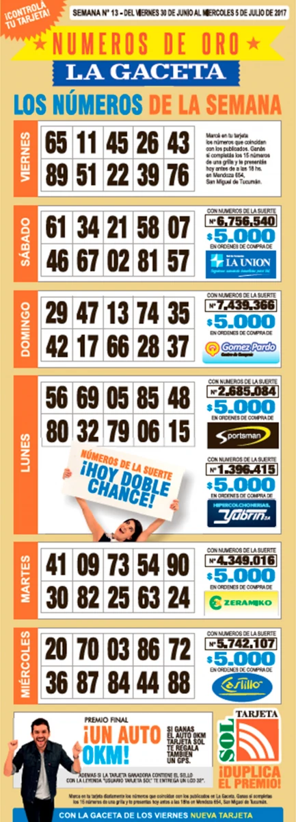 Como cada miércoles, se publicó la grilla completa de los Números de Oro de LA GACETA para que los lectores puedan revisar sus tarjetas. Aquellos que completen los 15 números de una de las grillas de su cartón deberán presentarse en calle Mendoza 654 hasta las 18, que cierra la semana número 13 de Números de Oro.