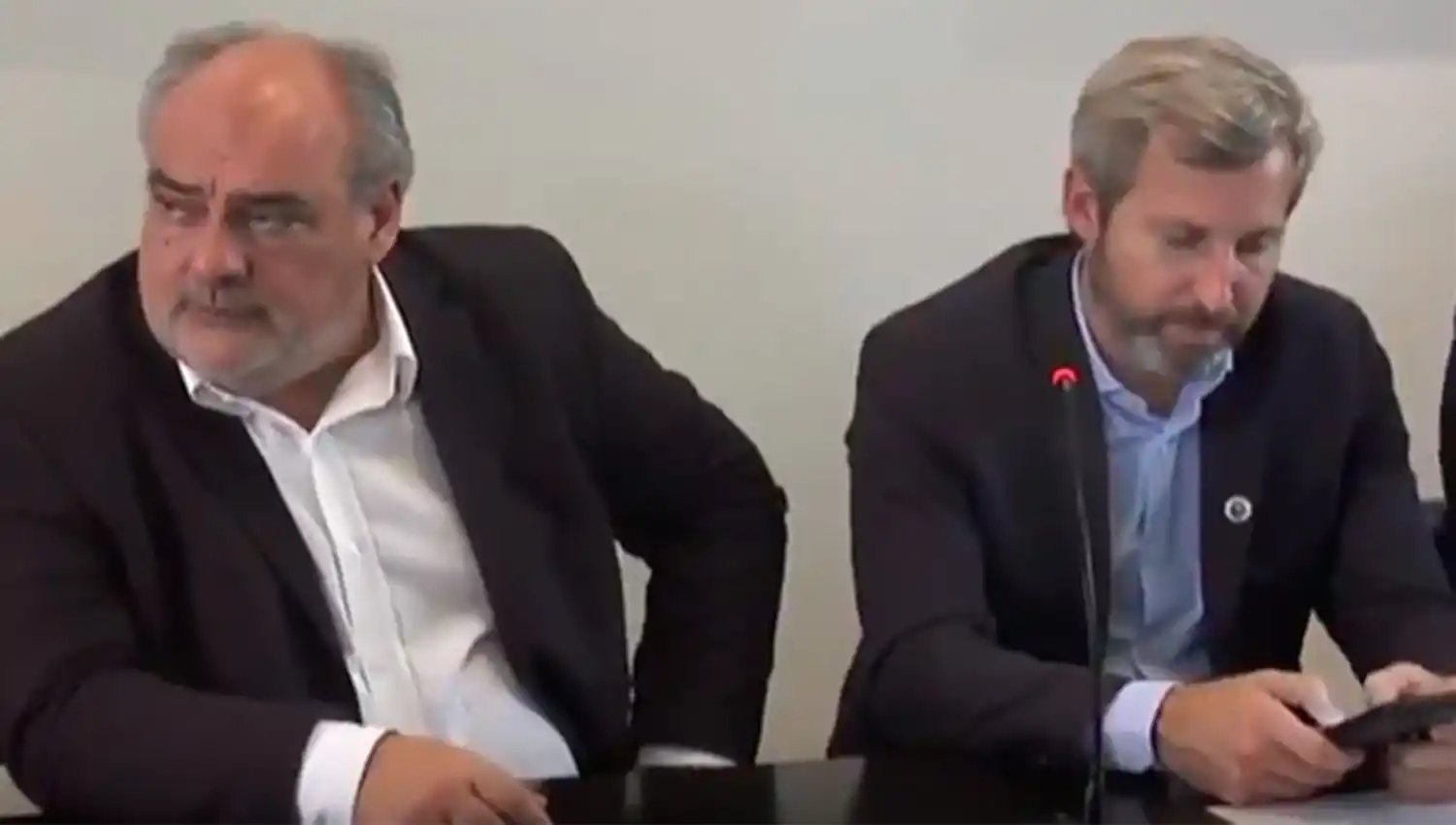 Frigerio solo atinó a sonreir ante la pregunta del periodista pero luego prefirió desviar la mirada mientras que se daba lugar a la pregunta de otro colega.