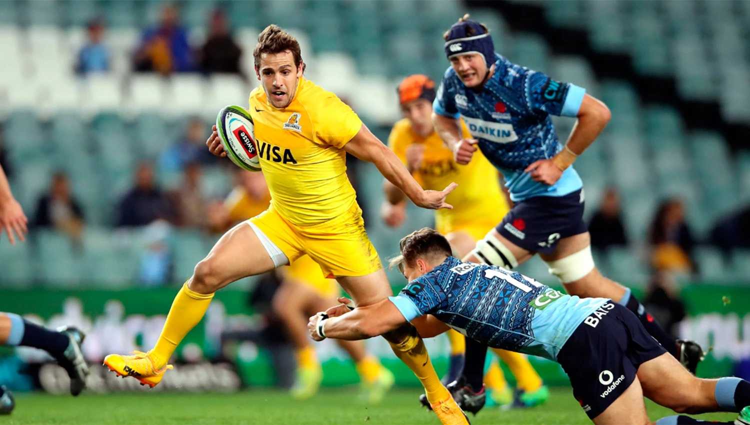 Pero, a partir de ese momento, Jaguares se complicó el partido solo. Una serie de penales le permitieron al local situarse en campo argentino y achicar distancias con un try de Israel Folau. Y enseguida, una infracción absurda de Guido Petti, y luego otra de Macome, derivaron en dos tarjetas amarillas que dejaron al equipo con trece jugadores para iniciar la segunda mitad. En esos ochos minutos iniciales de la parte complementaria, Waratahs se puso a un punto, con dos tries de Bernard Foley, ante un equipo nacional sin respuestas que parecía encaminarse hacia otra caída catastrófica.